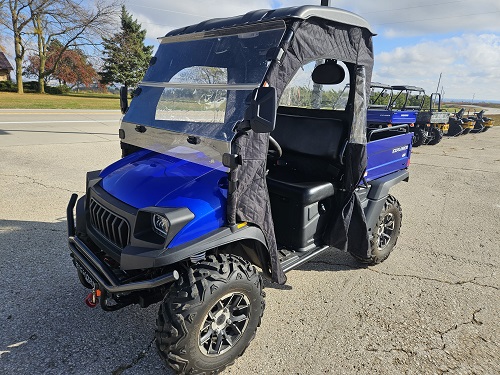USED UTVS  2022 BIGHORN 450 EFI BLUE PRODUCT INFO & SPECS: 35 Hours - 140 Miles Clean, One Owner, Local Trade In Includes Soft Side Cab & Bed Mat Seats 2 Max Speed: 45 MPH 26HP 391CC Four Stroke Single Cylinder Engine Liquid Cooled & Fuel Injected Automatic L-H-N-R-P Transmission (High & Low Gear) On Demand Shaft Drive 4WD w/ Locking Differential Rack & Pinion Steering 9" Ground Clearance McPherson Independent Front Suspension Independent Dual A-Arm Rear Suspension 4 Wheel Ventilated Hydraulic Disc Brakes 25x8-12 Front Tires - 25x10-12 Rear Tires1000lb Towing Capacity 400lb Bed Capacity (Dump Bed) 2" Hitch Receiver, Horn, Seat Belts, Side Mirrors, Foldable Windshield, Roof, High/Low Beam LED Headlights, LH & RH Turn Signals, 4 Way Flashers, Front Mount Electronic Winch